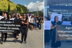 Profissionais da saúde protestam e param atendimentos após agressão em Canelinha