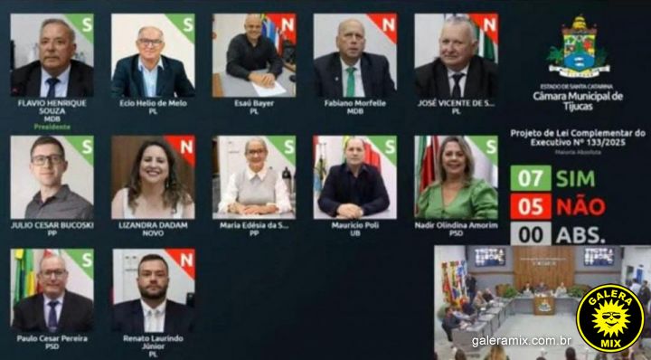 Na votação do projeto, foram 6 votos favoráveis — Écio Hélio de Melo, Júlio Cesar Bucoski, Maria Edésia da Silva Vargas, Maurício Poli, Nadir Olindina Amorim e Paulo Cesar Pereira — contra 5 votos contrários — Esaú Bayer, Fabiano Morfelle, José Vicente de Souza e Silva, Lizandra Dadam e Renato Laurindo Júnior.