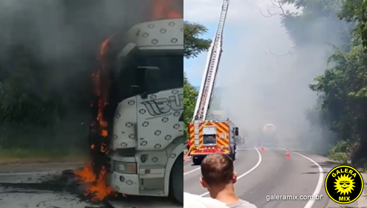 Um incêndio em um caminhão-tanque mobilizou equipes do Corpo de Bombeiros no início da tarde deste sábado (31), na descida do Morro do Boi, sentido Sul da BR-101, em Itapema, Litoral Norte de Santa Catarina.