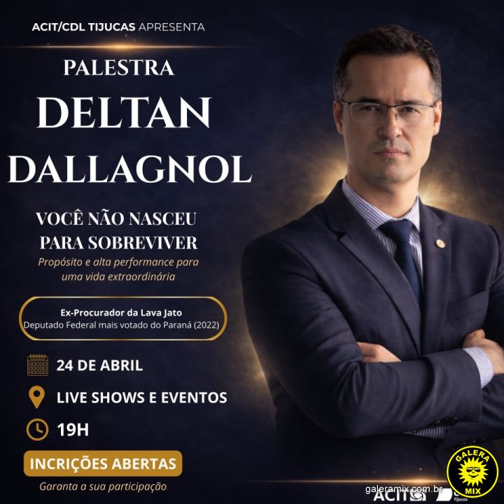 Tijucas e região receberão, no próximo dia 24 de abril, uma palestra com Deltan Dallagnol, voltada a empresários, gestores e profissionais interessados em desenvolvimento pessoal e resultados estratégicos. O evento está marcado para as 19h e será realizado pela empresa Live Shows e Eventos.