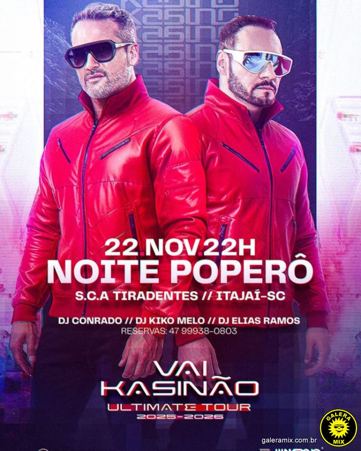 A banda Kassino se apresenta em Itajaí no dia 22 de novembro, prometendo uma noite de muita animação e nostalgia na Sociedade Tiradentes, localizada na Rua José Pereira Liberato, nº 437. O show está previsto para começar às 22h30 e deve reunir fãs de toda a região para reviver grandes sucessos que marcaram época nas pistas de dança brasileiras.