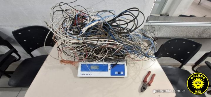 Ao chegar ao endereço, a guarnição policial visualizou os dois suspeitos sobre o telhado da edificação, já na posse de diversos pedaços de fios.