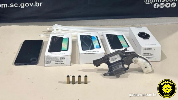 Dentro do carro, os policiais encontraram um revólver calibre .32 com quatro munições deflagradas, além de quatro aparelhos celulares novos e a embalagem de um relógio smartwatch, contendo apenas o carregador. O condutor, de 33 anos, confessou participação no crime e relatou a atuação de outros dois envolvidos que teriam deixado a cidade.