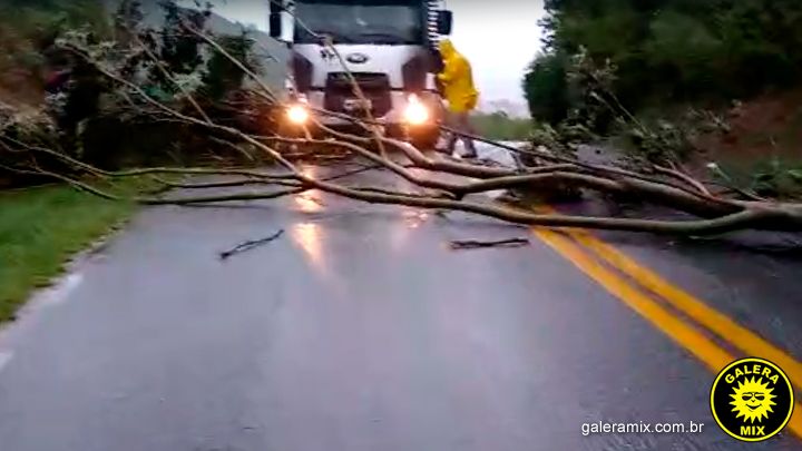 Já no morro de Zimbros, um dos acessos ao município, uma árvore caiu sobre a pista impossibilitando a passagem de veículos.