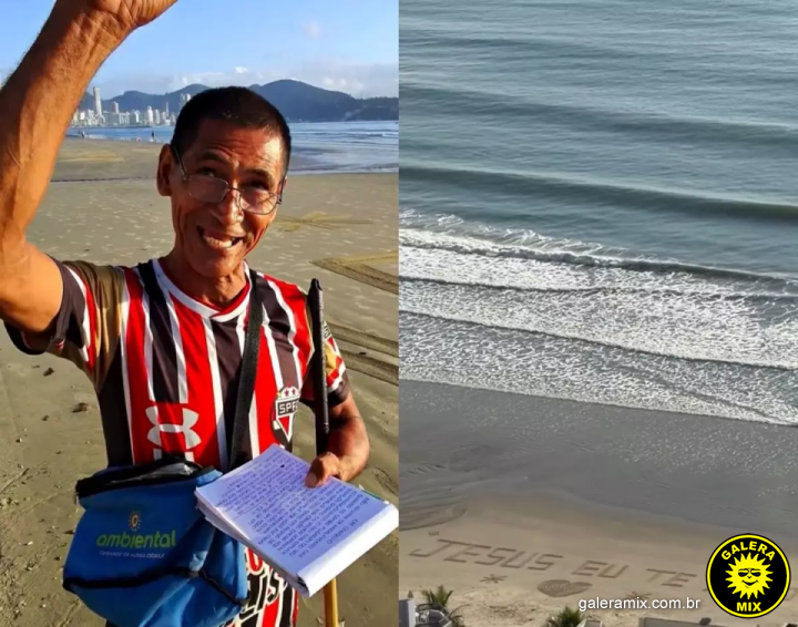 Um homem identificado apenas como Afonso tem emocionado moradores e turistas ao percorrer a orla de Meia Praia, em Itapema, no Litoral Norte de Santa Catarina, escrevendo mensagens religiosas e de reflexão na areia da praia. O caso viralizou nas redes sociais após o influenciador digital Nando Brizot gravar a cena do alto de um prédio e publicar no Instagram, onde o vídeo já acumula mais de 41 mil curtidas.