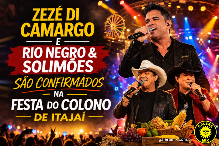 A organização da tradicional Festa do Colono de Itajaí confirmou duas grandes atrações nacionais para a edição de 2026. O cantor Zezé Di Camargo e a dupla Rio Negro & Solimões estão entre os artistas que irão subir ao palco do evento, que chega à sua 40ª edição. Reconhecidos como ícones do sertanejo brasileiro, os artistas prometem atrair grande público e animar a festa com sucessos que marcaram gerações. Zezé Di Camargo ficou nacionalmente conhecido por sua trajetória no sertanejo romântico, enquanto Rio Negro & Solimões conquistaram fãs com um estilo que mistura sertanejo raiz, romantismo e músicas animadas. A Festa do Colono é um dos eventos mais tradicionais de Itajaí, celebrando a cultura agrícola da região com gastronomia típica, apresentações culturais, exposições e grandes shows nacionais. A expectativa é de que a edição de 2026 reúna milhares de visitantes durante os dias de programação.