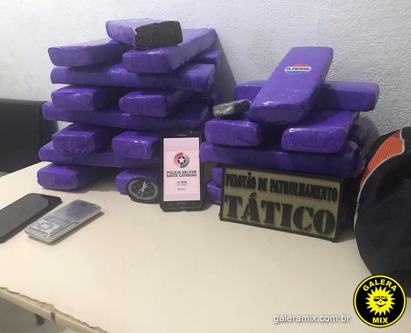 O jovem que estava com a droga ainda tentou correr quando viu o Tático chegando, mas já era tarde.