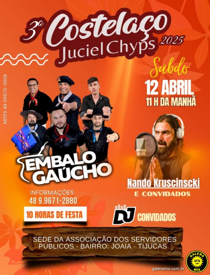 Dia 12 abril acontece o 3º Costelaço do Juciel Chyps em Tijucas.