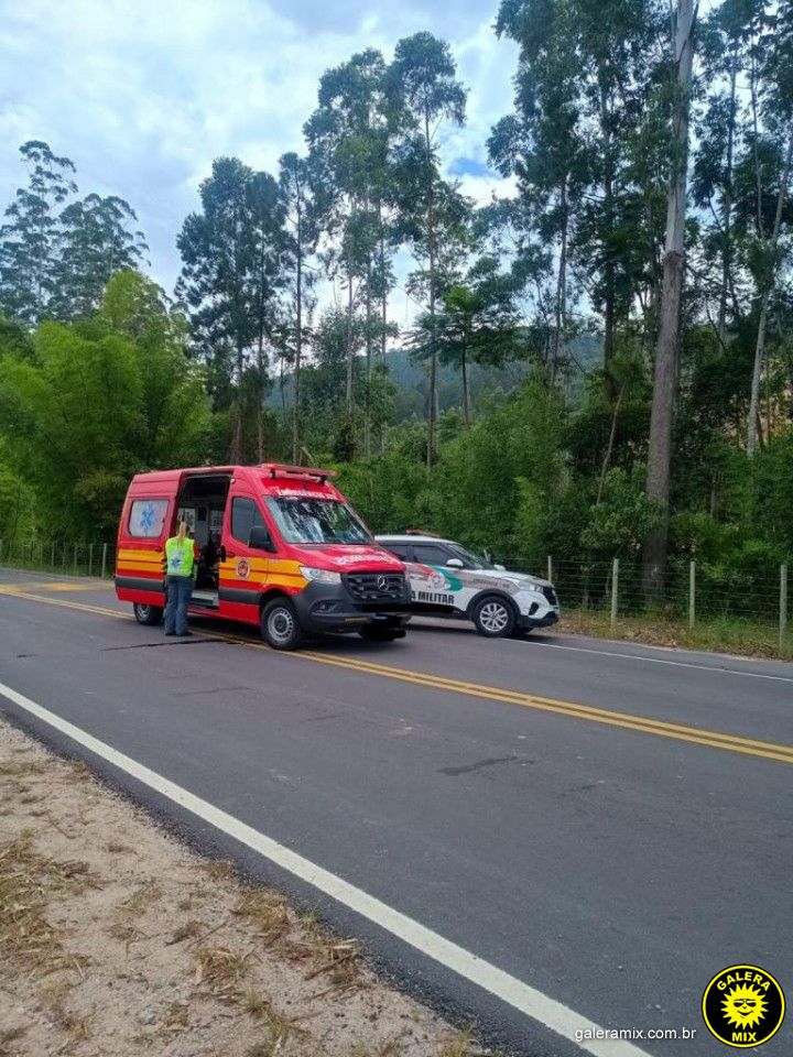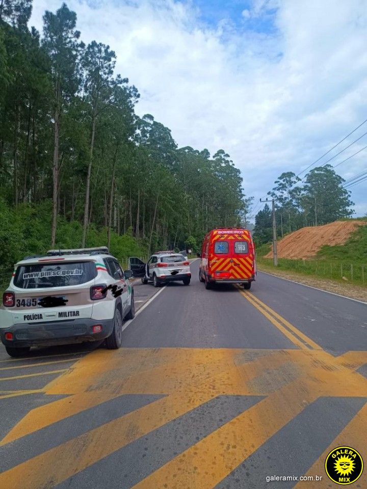 Um acidente de trânsito envolvendo uma motocicleta e uma viatura da Polícia Militar deixou um homem ferido na manhã desta quinta-feira, 29 de janeiro, na Estrada Geral do Timbé, no município de Tijucas.
