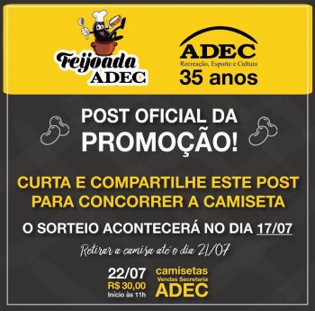 Vendas de camisetas na secretaria da ADEC no valor de R$ 30,00 por pessoa.