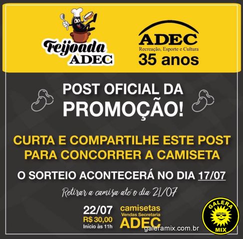 Neste próximo sábado, dia 22 de julho, Adec. (Associação para o Desenvolvimento dos Empregados Ceramistas) celebra os seus 35 anos com uma grande feijoada.