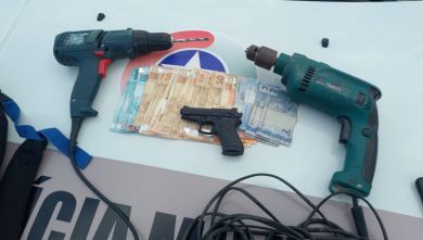 O adolescente carregava uma mochila com os produtos roubados, entre eles, uma furadeira, uma parafusadeira, a quantia de R$ 1,6 mil em dinheiro, aparelhos celulares e a chave de um veículo. Os policiais constataram que a arma utilizada no crime, era um simulacro de arma de fogo, encontrado com o acusado no momento da abordagem.