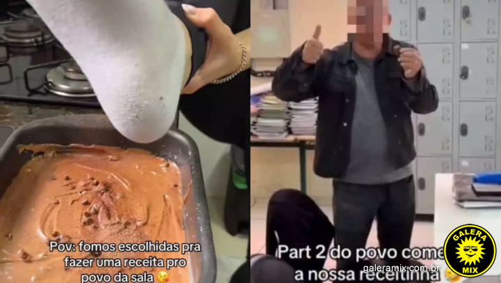No vídeo, publicado no TikTok, as jovens aparecem simulando situações de sujeira: uma delas cospe, balança o cabelo sobre a massa e até “raspa” uma meia para dar a entender que derrubaria sujeira dentro da forma.