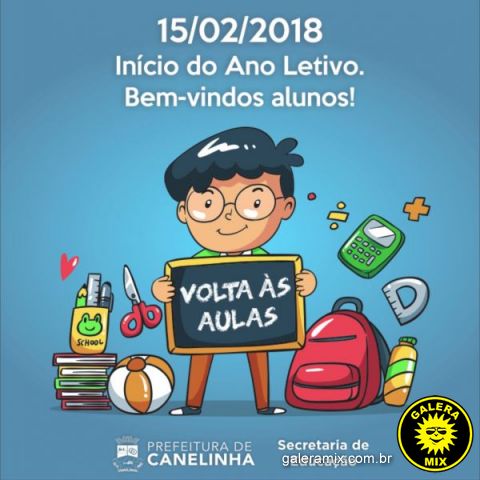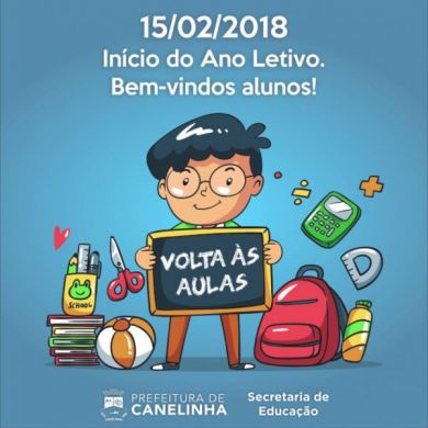 A Prefeitura de Canelinha, através da Secretaria de Educação, Cultura e Esportes, informa que os alunos da Educação Infantil e do Ensino Fundamental, iniciam o ano letivo 2018 no dia 15 de fevereiro.