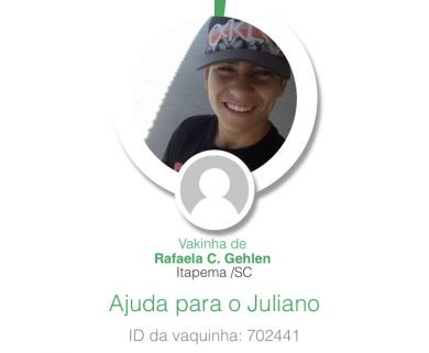 Agora, no site Vakinha.me, uma amiga de Juliano está organizando uma vaquinha para arrecadar dinheiro para ajudar nas necessidades futuras do jovem.