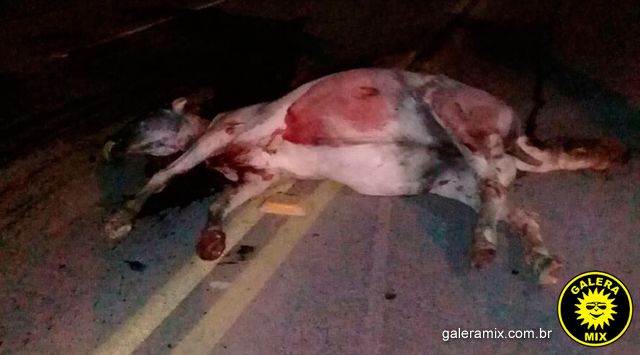 Com o impacto da colisão, o veículo Peugeot ficou destruído e o animal acabou morrendo na via.