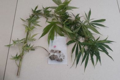 Diante das informações a guarnição foi até o local e visualizou um pé de maconha plantado na garagem da quitinete e percebeu que não havia ninguém no imóvel, porém as janelas encontravam-se abertas e foi visto que estava sobre a mesa da cozinha um torrão de aproximadamente 5g de maconha juntamente com um comprimido de ecstasy. Sendo assim a guarnição adentrou à residência e apreendeu o material ilícito.