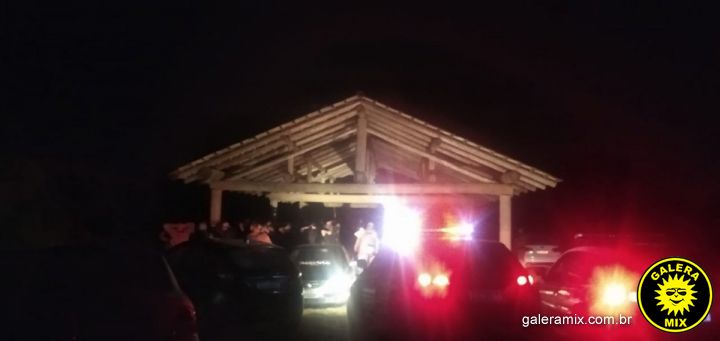 No local constatado um grande número de pessoas todas juntas e sem máscaras, como também grande números de bebidas alcoólica , com a chegada da guarnição começou uma grande confusão sendo que um dos integrantes com um litro na mão veio em direção a um policial sendo necessário 02 disparos de calibre 12 com munição de elastômero no masculino, sendo que após os disparos o mesmo empreendeu fuga pelo mato não sendo mais localizado.