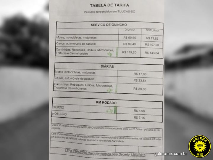 A Diretoria Municipal de Trânsito de Tijucas – Ditran, Polícia Civil e o próprio Ministério Público da comarca, tem recebido reclamações à respeito dos valores cobrados por serviços prestados pela empresa que administra o Pátio Municipal de Veículos, localizado no bairro Sul do Rio.