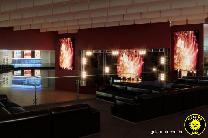 Um palco com 540 m² de área, sendo 24 metros de boca de cena por 15 metros de profundidade e 22 metros de altura livre - acima do palco.