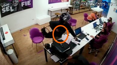 Segundo imagens gravadas pelo sistema interno de segurança, o homem entrou no local e tomou o celular dos funcionários. Em seguida, entregou uma mochila para um dos colaboradores colocar algo dentro.