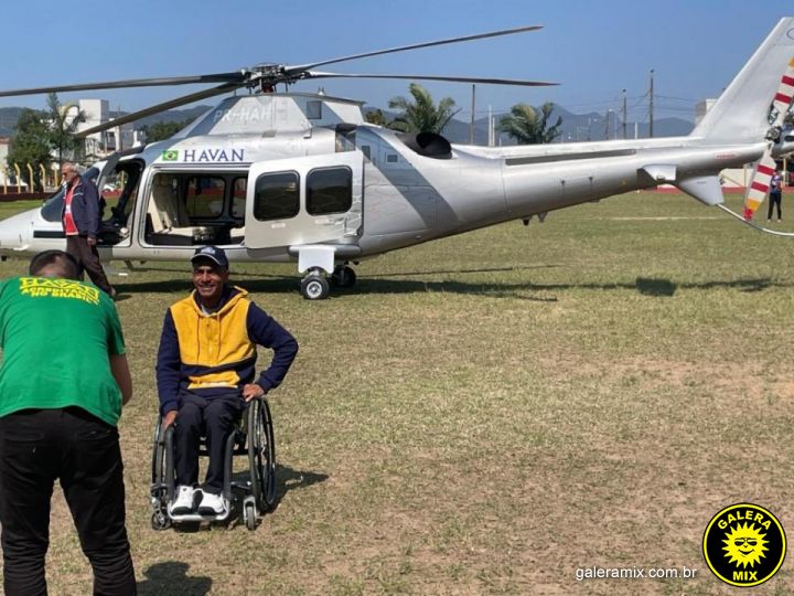 Ymanitu viajou de helicóptero das lojas Havan, que é patrocinadora do atleta, de Florianópolis para São Paulo. Na cidade ele receberá o material dos atletas paralímpicos, e segue para Paris.