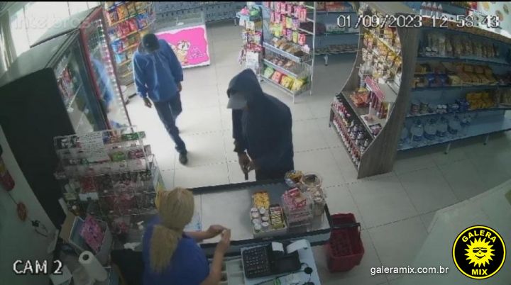 Câmeras de segurança do estabelecimento registraram toda a ação dos bandidos. Pelas imagens é possível ver o momento exato em que eles entram no local. Um deles, armado com uma pistola, vai até o balcão e mostra a arma para a atendente, que imediatamente tira todo o dinheiro do caixa e entrega a ele. O comparsa, entra no espaço e fica atrás da vítima, vasculhando tudo na tentativa de encontrar outros objetos ou mais dinheiro.