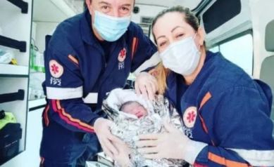 Bebê nasce com cordão umbilical enrolado no pescoço dentro de ambulância em Itapema
