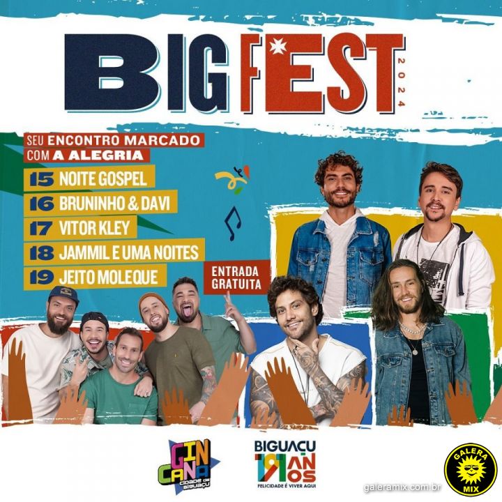 Na próxima quarta-feira (15), a Big Fest 2024 marca o início das comemorações dos 191 anos de Biguaçu. O evento, que acontecerá de 15 a 19 de maio, promete cinco dias consecutivos de entretenimento e diversão para todos os gostos e públicos.
