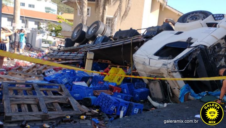 Na manhã desta quarta-feira (28), um caminhão carregado de cerveja tombou na descida do morro de Bombas, em Bombinhas, após uma falha mecânica. Com impacto da queda toda mercadoria transportada veio ao chão e com isso boa parte acabou danificada.