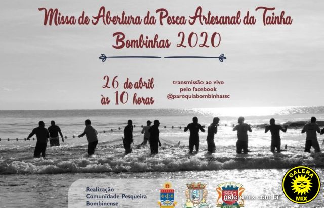 A 11ª edição de Abertura da Pesca Artesanal da Tainha acontece nesse domingo, 26 de abril, às 10 horas e será transmitida pela página do Facebook da Paróquia Bombinhas @paroquiabombinhassc. Realizada anualmente na Praia de Bombas, este ano em decorrência da pandemia da Covid-19 será executada na Igreja matriz, conduzida pelo pároco local, padre Silvano Oliveira, auxiliado por um pequeno grupo responsável pelos ritos litúrgicos.