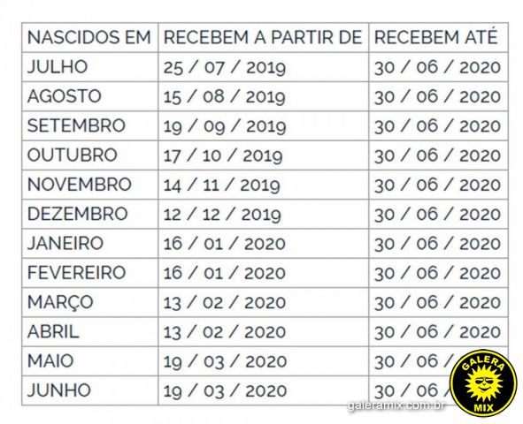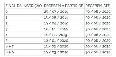 Quem nasceu nos meses de julho a dezembro ou tem número final de inscrição entre 0 e 4 receberá o benefício ainda no ano de 2019. Já os nascidos entre janeiro e junho e com número de inscrição entre 5 e 9 receberão no primeiro trimestre de 2020. Em qualquer situação, o recurso ficará à disposição do trabalhador até 30 de junho de 2020, prazo final para o recebimento.
