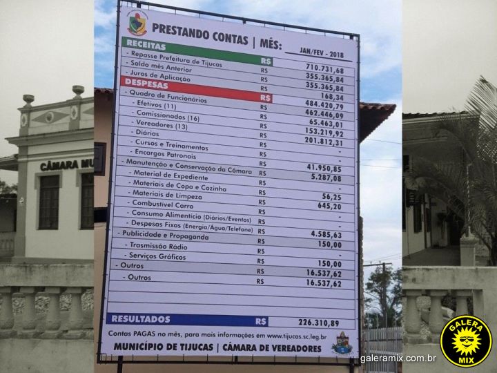 Recentemente, quem passa pela sede do Poder Legislativo, no Centro de Tijucas, nota em frente ao prédio há uma placa onde estão dispostos os números referentes aos gastos públicos da casa de leis. A medida foi idealizada pelo atual presidente, Juarez Soares (PPS), já que a câmara enfrenta certa demora, devido a burocracia, para disponibilizar um portal de transparência na internet.