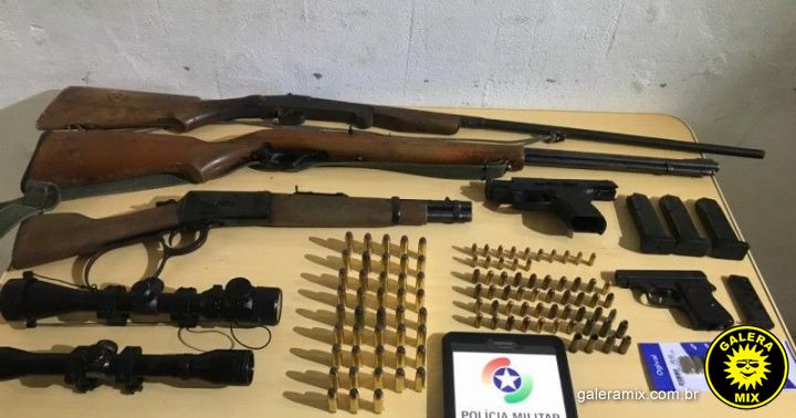 Na casa dele, a PM encontrou no quarto dentro de uma cômoda uma pistola calibre .380 municiada, alimentada, carregada e três carregadores. No armário foram localizadas duas lunetas de precisão, uma espingarda calibre .22 municiada, alimentada e carregada, uma espingarda calibre 36 sem munição e identificação de marca ou numeração e uma espingarda carabina calibre. 44 Magnum municiada, alimentada e carregada, além de diversas munições.