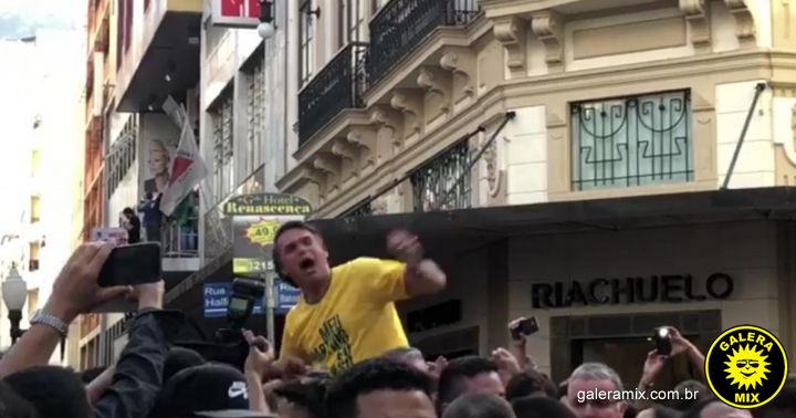 No momento em que foi esfaqueado, Bolsonaro estava sendo carregado nos ombros por um apoiador de sua campanha, fazendo corpo a corpo com eleitores, na região do Parque Halfeld. Enquanto ele acenava para os simpatizantes de sua candidatura, o homem se aproximou e deu uma facada no presidenciável.