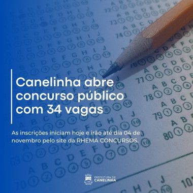 A Prefeitura de Canelinha informa a publicação do edital referente ao Concurso Público 001/2022. Ao todo, são 28 vagas de nível médio, médio e superior, com salários que variam de R$ 1.335,14 a R$ 2.384,58. O período de inscrições para o certame inicia hoje dia 07 de outubro, transcorrendo até às 17h do dia 04 de novembro de 2022. Para participar do processo, o candidato deverá acessar o site www.rhemaconcursos.com.br., portal onde terá acesso ao edital e seus anexos, inclusive a ficha de inscrição. “Era uma necessidade latente a realização de concurso público”, explica o prefeito, Diogo Maciel. “Ao longo de nossa gestão, fizemos estudos e projeções que nos permitiram, com responsabilidade e cuidado com os recursos públicos, A publicação do resultado final para homologação está prevista para o dia 31 de janeiro de 2023. Vagas: - Professor de Ensino Fundamental Habilitação profissional de nível superior, em curso de licenciatura plena, comprovada mediante certificado. - Professor de Educação Infantil Habilitação profissional de nível superior, em curso de licenciatura plena, comprovada mediante certificado. - Professor de Educação Infantil Habilitação profissional de nível superior, em curso de licenciatura plena, comprovada mediante certificado. - Professor de Língua Inglesa Curso superior completo em Letras, com habilitação em língua inglesa. - Professor de Educação Física Nível superior completo - Licenciatura e/ou Bacharelado em Educação Física, em instituição de ensino superior reconhecida pelo Ministério da Educação. - Professor de Artes Nível superior completo - Licenciatura e/ou Bacharelado em Artes Visuais, em instituição de ensino superior reconhecida pelo Ministério da Educação. - Vigia Alfabetizado. - Auxiliar de Serviços Gerais Ensino fundamental completo ou seis meses de experiência em atividade similar.