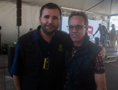 O músico e compositor Francisco Carlos Berlink, mais conhecido como Caio Berlink. Com seus companheiros do grupo Café no Bule, foi uma das atrações que fizeram parte da festa em comemoração aos 158 anos de Tijucas. O artista local agradeceu a organização da festa e a prefeitura pelo convite para tocar no evento. Em entrevista ao Portal Galera Mix, falou sobre seu novo trabalho que está gravando, totalmente inédito, diferente do que toca no Café no Bule. Ouça: