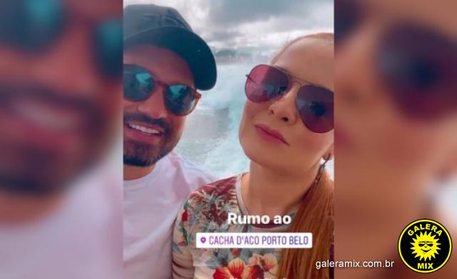 Cantores Maiara e Fernando Zor curtem passeio na Praia do Caixa D’Aço em Porto Belo