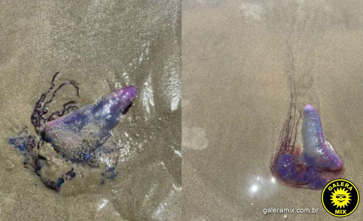 Caravelas-portuguesas foram vistas na areia da orla de Itapema, na manhã deste sábado (10). Os animais foram flagrados em dois pontos diferentes, uma na Meia Praia e outra no trecho da praia do Estreito, área que fica entre a Meia Praia e a Praia do Centro. A presença desses animais liga um alerta para os banhistas, devido ao perigo apresentado pelas toxinas liberadas em caso de contato físico.