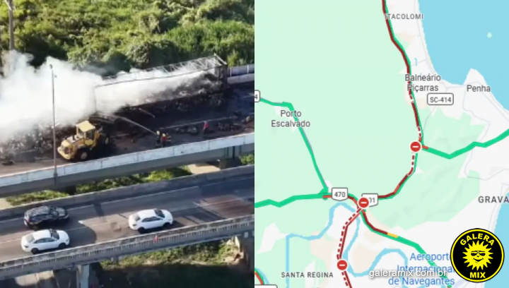 Um incêndio em uma carreta interditou totalmente a BR-101 na tarde deste sábado (28), no km 111, em Itajaí, sobre a ponte do Rio Itajaí-Açu, que liga os municípios de Itajaí e Navegantes. A ocorrência causou filas superiores a 15 quilômetros e impactou o trânsito nos dois sentidos da rodovia.