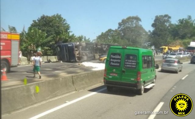 Um homem de 28 anos ficou gravemente ferido após o tombamento de uma carreta na tarde desta terça-feira (28) na BR-101, no bairro São Miguel, em Biguaçu, na Grande Florianópolis. Segundo a PRF (Polícia Rodoviária Federal) o acidente ocorreu por volta das 14h40, na altura do km 191, próximo ao posto da PRF, e deixou o motorista preso às ferragens. O trânsito no sentido Norte ficou interditado causando congestionamento de até 12 km.