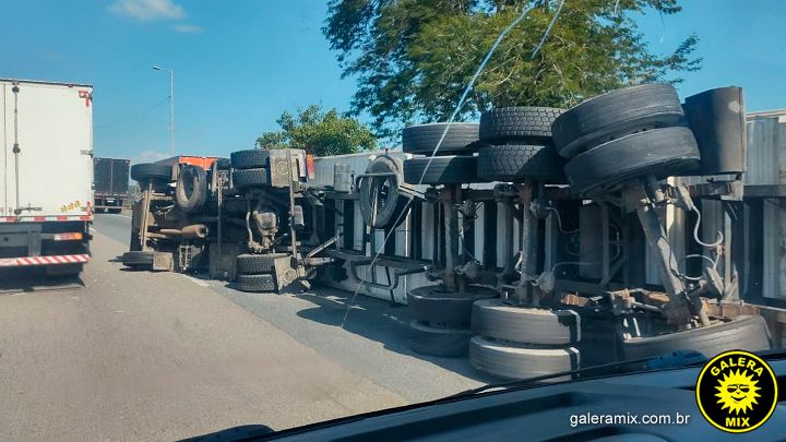 Equipes da Arteris Autopista Litoral Sul, responsável pela concessão da rodovia está trabalhando no local na retirada da carreta da via, mas a pista continua interditada. O acidente não registrou feridos.