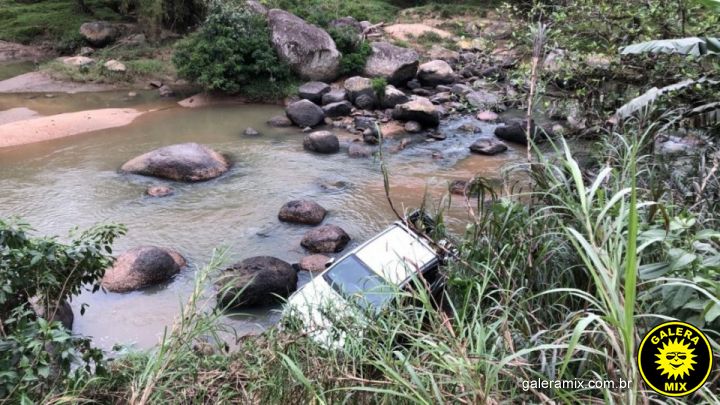 Na manhã desta segunda-feira (21), um carro acabou caindo no rio na localidade do Salto no interior de Nova Trento.