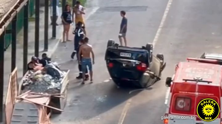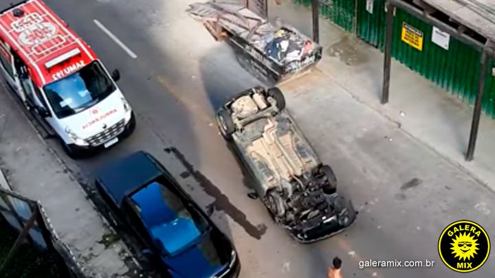 De acordo com as informações iniciais, o condutor seguia pela via e não percebeu uma caçamba de rejeitos da obra, popularmente conhecida como “papa entulho”. Após o choque, o carro acabou virando e tombou no meio da rua.