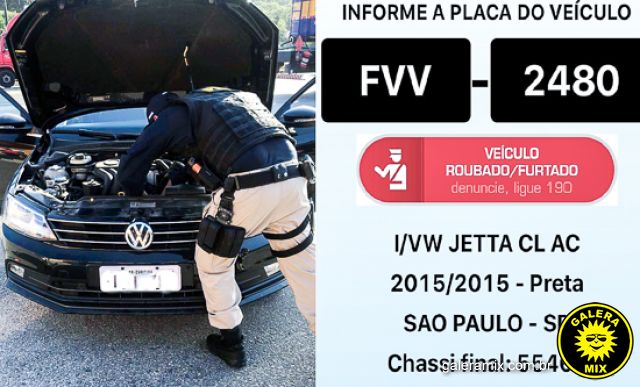 O carro foi adulterado para ter placas e outros sinais identificadores idênticos aos de outro Jetta semelhante registrado em Curitiba/PR.