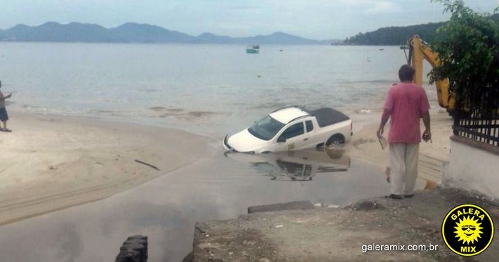Uma cena inusitada surpreeendeu moradores e turistas da Praia Central de Porto Belo. Na manhã desta terça-feira, 16, o veículo utilizado pela Fatma (Fundação do Meio Ambiente) de Santa Catarina ficou atolado. O carro não conseguiu passar por um rio que deságua na praia. Uma retrosecavadeira precisou ser acionada para o resgate. O automóvel é utilizado durante as coletas de água para aferir a balneabilidade das praias.