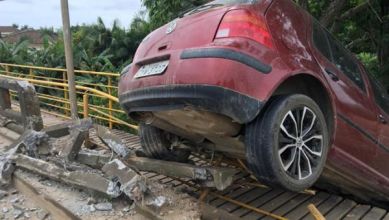 Um veículo VW/Golf, com placas de Tijucas, por pouco não caiu em um riacho na manhã deste sábado (14), após colidir contra à grade de proteção da ponte que dá acesso à SC-410, no bairro Joáia. O condutor, morador de Tijucas, informou que vinha sentido Canelinha, por volta das 6h30, quando perdeu o controle da direção ao contornar uma curva. Ele contou que tentou parar, mas ao frear, não conseguiu impedir que o carro se arrastasse de lado por alguns metros. O veículo só parou ao bater nas grades da passagem de pedestre da ponte.Apesar do forte impacto, o motorista, que estava sozinho, não ficou ferido.