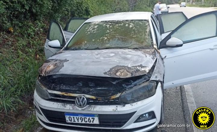 A guarnição do Abtr 80 e ASU 442 foi deslocada para uma ocorrência de incêndio em um veículo de passeio. Chegando ao local, foi constatado um Polo Branco, que estava às margens da rodovia, com as chamas no motor e começando a passar para o interior foram veículo.
