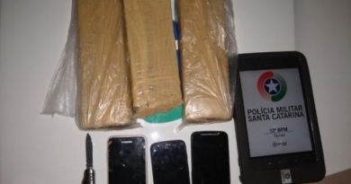 Após busca pessoal nos ocupantes, nada foi encontrado. Já no carro, os policiais localizaram três tabletes de maconha, encontrada no porta malas, acondicionada em uma bolsa de cor begê. A droga pesava 2.377 quilos. Os envolvidos foram encaminhados para a Delegacia de Itapema.