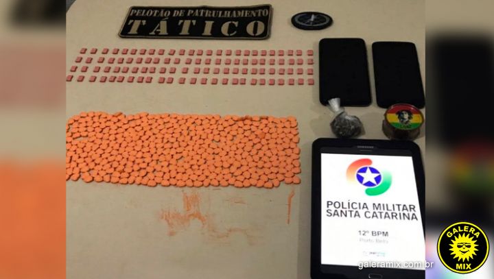 Dois jovens foram presos com aproximadamente 500 comprimidos de ecstasy nesta segunda-feira (11) em Porto Belo. O flagrante foi realizado pelo PPT (Pelotão de Patrulhamento Tático) da Polícia Militar.